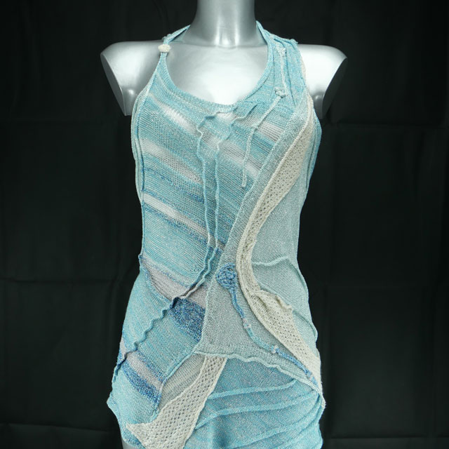 “Uživam v barvah in Jolandine kreacije so bile ob obisku v njenem studiu / ateljueju zame pravo doživetje. Ker sem tudi sama umetnica mi je krasno začutit ustvarjalni kotiček še koga in ga opazovat kak na svoj način spleta umetnost. Kljub temu, da pletenin nisem najbolj vajena, je njena obleka zelo prispevala k čarobnosti mojega doživljanja na razstavi, ki sem jo pred leti pripravila v Hotelu Mons, Sheraton 4 Points. V njej sem se počutila dragoceno, edinstveno in lepo in sem jo tistega večera s ponosom nosila. Hvala Jolanda, da z nami deliš svoj dar.”