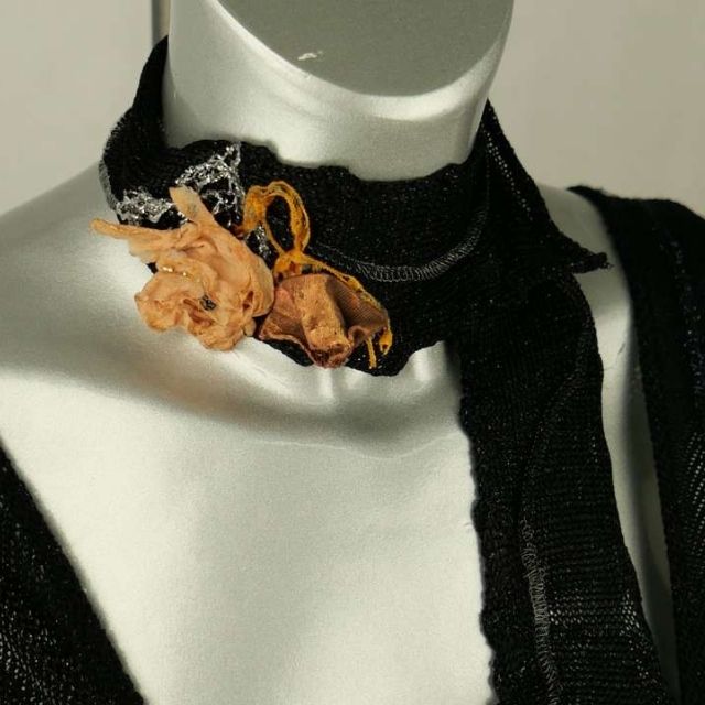 “Z Jolando se poznava že dolgo. Vse se je začelo s prav posebnim krilom, ki sem ga slučajno videla na njej. Oooo, jaz bi tudi nekaj podobnega, me je prešinilo, a sem idejo takoj odmislila. Kaj takšnega v moji XL velikosti zagotovo ne bi bilo tako šik. Pa vendar vprašati ni greh in tako se je začelo. Ni se zmedla, ko sem jo prosila za izdelavo prvega krila. Navdušeno je sprejela moje neobičajne želje in jih nadgradila s svojimi idejami ter izvirno dokončala izdelek v obojestransko veliko zadovoljstvo. In prvemu krilu je sledilo drugo in tretje, pa majica, pas, šal, pokrivalo…. že nekaj časa pa me mika, da bi oblekla kakšno njeno obleko. Samo, da pride še prava priložnost…
